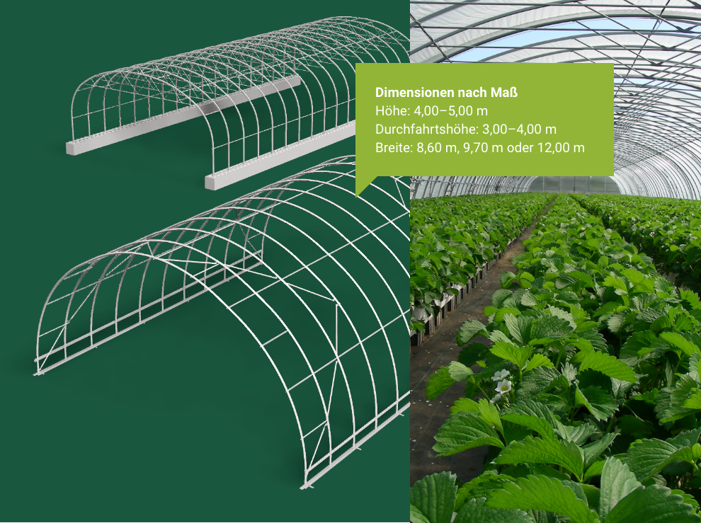 Unsere bewährte und stabile Stahlkonstruktion aus verzinktem Rundrohr bietet vielfältige Einsatzmöglichkeiten: